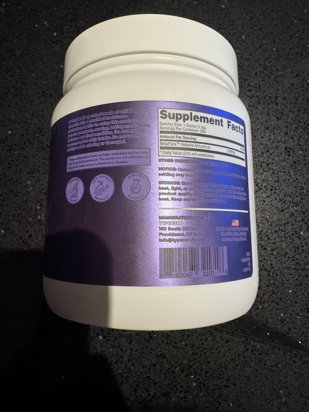 Type Zero Betaine Anhydrous delivers 1,500mg of Betaine Anhydrous per serving.